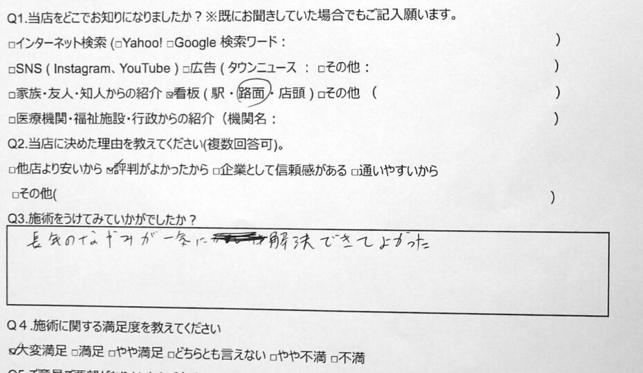路面の看板をきっかけに当院を知ってくださり、さらに「評判がよかったから」という温かい理由で足をお運びいただけたこと、スタッフ一同大変光栄に存じます。